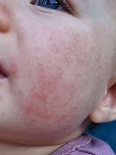 Een vriendin van me haar kindje had ook opeens uitslag (krijgt alleen borstvoeding) maar die reageerde dus opeens heel heftig als zij dus dingen met zuivel had gegeten/gedronken, en ik weet dat keratosis pilaris ook uitgelokt kan worden door voeding.