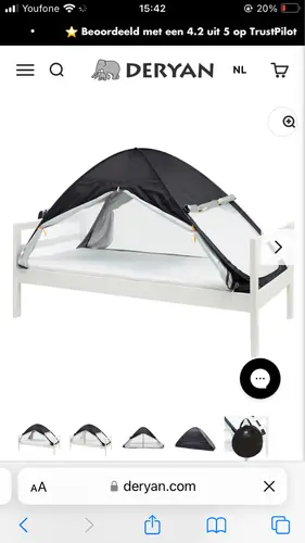 Ik ben meer voorstander van een camping bed. Maar in mijn familie zijn meerdere gezinnen die kinderen op de camping altijd in een Deryan tent hebben meegehad.