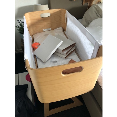 Wij hebben een boxspring van 67 cm hoog en ik kon geen goede co sleeper vinden die daarop aansloot, behalve de BedNest. Die vond ik dan weer te duur, dus nu hebben we een wiegje naast het bed ❤️