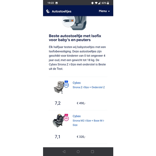 De cybex sirona m2 i-size heb ik, ben er super tevreden over! Heb hem met mijn oudste dochter tot 3 jr gebruikt, tot ruim 2,5 achterwaarts. Toen wilde ze wat meer om zich heen kunnen kijken. En na verloop van tijd vond ik dat ze er toch wat onderuitgezakt in lag en dat de gordel tussen haar beentjes wel echt in de kruis kroop. Dus toen zijn we overgestapt.