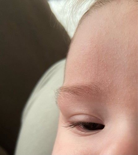 Lijkt ook bij ieder kindje bij dezelfde wenkbrauw te zitten.