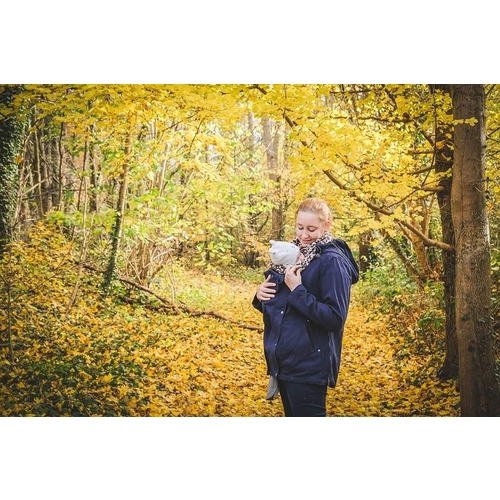Ga je ook op je rug dragen, of alleen buik? Bij alleen buikdragen zal een groter vest ook wel voldoen, op koude dagen eventueel een sjaal om het gat op te vullen. Het wordt dan ook snel wel weer mooier weer (alhoewel je daar tegenwoordig niets meer over kan zeggen).
