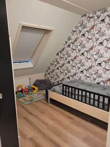 Onze zoon is nu bijna 2,5 en zijn broertje wordt binnen nu en 2 weken verwacht. Hij kreeg ook een nieuwe kamer vlak na zijn 2e verjaardag. Hebben hem gelijk een eenpersoonsbed gegeven (hadden deze al staan als logeerbed) met een bedhekje er aan zodat hij zich nog wel geborgen voelt. Hij heeft een grote kledingkast voor zijn kleren en de commode staat op de babykamer die gebruiken we ook voor hem om hem te verschonen. Verder staat er wat speelgoed op zijn kamer. Hij heeft een jungle thema kamer gekregen. 🥰