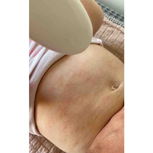 Misschien een allergische reactie op wasmiddel? Ons zoontje had dat ook en toen zag het er ook zo uit.. bij mijn eigen eczeem gebruik ik koelzalf zonder rozenolie (bij de apotheek)