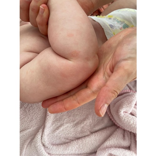 Mijn dochter had dit op haar buikje een tijdje. Doe nu als ze in badje gaat van Kruidvat zemelenbadje in haar bad. Sinds die tijd is het nu weg, heb het ook eens een tijd niet gebruikt en dan zag ik het weer terugkomen