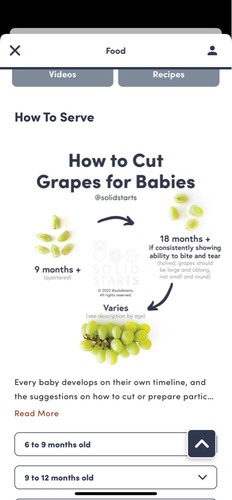 Dit staat er over druiven. Zij adviseren pas vanaf 9 maanden als je kindje al wat meer gewend is aan eten.