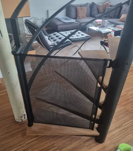 Wij hebben een lang traphekje waarmee we de hele gang hebben afgesloten omdat de trappen bij ons tegenover elkaar zitten. Ik ben nu niet thuis, dus kan geen foto maken helaas.