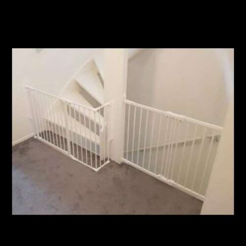 We hebben niets in het midden hoeven te maken voor extra stevigheid. Traphekje trekken we van de ene muur naar de andere muur en klikken hem daar vast. Het is dus een opvouwbaar traphekje wat beide trappen (naar beneden en zolder) afschermt in 1 keer.