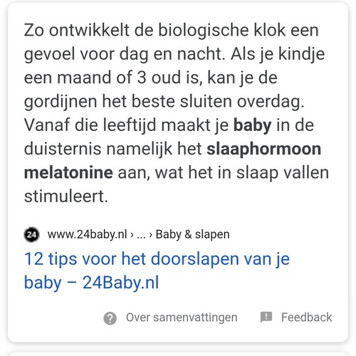 Ik liet de gordijnen altijd open omdat ik bang was voor een omgekeerd dag nacht ritme.. maar sinds een week doe ik ze dicht toen was die 7 weken. Hij slaapt nu veel beter en langer smiddags in zn grote bedje om te wennen (11:00 tot 15:00). Voor ik dit deed kreeg ik het niet voor elkaar ben zelf in slaap te laten vallen in zn grote bedje.