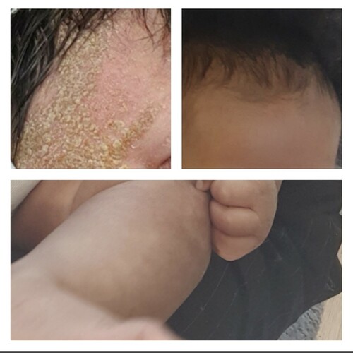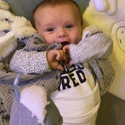 En dan nog 1 foto toen het erg was, en deze 2 zie je dat weg is. Kijk het is wel zo, ene dag zit hij helemaal onder de rode bulten en eczeem. Andere dag gaat het weer weg, vooral chronisch eczeem komt en gaat. Het is iets waar je mee moet leren leven helaas, en het is best zwaar. Ik weet daar alles van, heb vaker lopen huilen omdat hij gwn aan het krijsen was van de jeuk. En zichzelf helemaal open krabte tot er bloed kwam. Maar als je volhoud en de juiste creme en manier vind voor je kindje, dan op een gegeven moment zie je dat de eczeem rustiger word. Als de eczeem rustiger is, en je ziet dat je baby alweer begint te krabben maar je ziet niks. Gelijk insmeren en desnoods fenistil druppels gebruiken. Want mijn dokter zei dat eczeem er al aankomt ook al denk je oh huid is nu weer mooi maar hij krabt. Ik zou ook kijken naar wat voor je knuffels en dekens je hebt want dat kan de huid ook irriteren. En zoals ik zeg, ik zou kijken idd met de dermatoloog wat zou helpen. Echt heel vervelend! Sterkte.