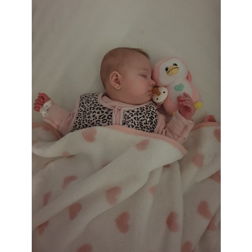 Mijn dochter is 12 weken en slaapt al zeker 5 weken met een knuffel. Merk dat ze graag iets vast heeft als ze in bed ligt.