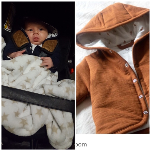 Wij hebben nu dit soort vestjes van Noppies, lekker warm gevoerd aan de binnenkant. Expres zonder capuchon want dat vind ik echt onhandige rot dingen, en dan een voetenzak voor in de Maxi Cosi