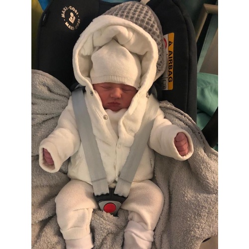 Die van de Hema hebben wij gekregen als kraamcadeau van iemand! Hij heeft hem 1x aan gehad. Om hem aan te krijgen was een hele toestand maar toen die eenmaal zat was het prima! 馃憣馃徏