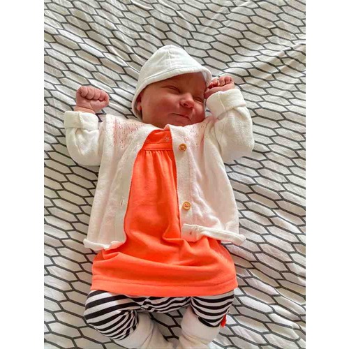 Dit was het geboortepakje van onze dochter. We zagen het en waren verliefd erop馃グ. En helemaal met ons meisje in het pakje natuurlijk馃槣. Felle kleurtjes staan haar nog steeds het beste馃槉