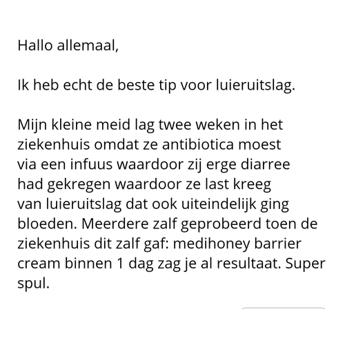 Ik heb dit is een keer gehad en bleek een schimmel te zijn ipv luieruitslag. Ik smeerde sudocreme, verzorgende cremes etc en dit maakte het juist erger, dit voed de schimmel. Misschien even bellen met de huisarts?