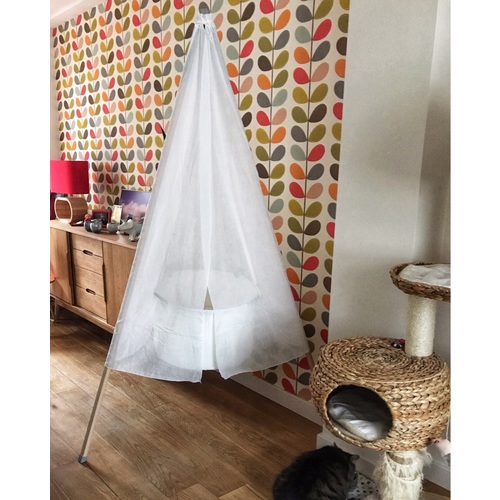 Zo was het trouwens met de Leander wieg. De poten stonden veel te fel in de weg (de sluier had ik ook per ongeluk verkeerd gehangen, haha).
