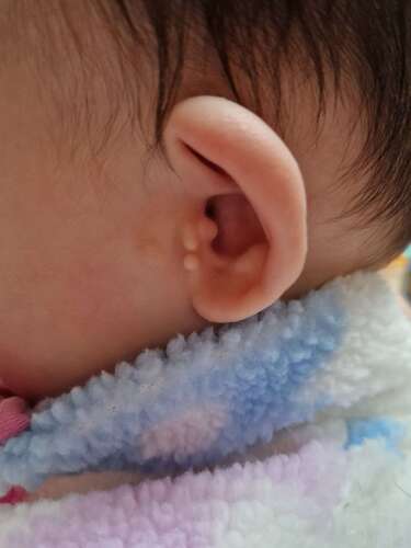 Ons zoontje van bijna 2 heeft ook 2 bijoortjes aan 1 kant. Wij hebben er voor gekozen dit wel weg te laten halen. Ze zijn aanwezig en duidelijk te zien.