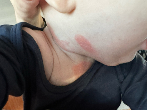 Naif, badolie, huidolie, vette crème. Pampers billendoekjes. Persil sensitive gel voor de kleding, dit ging goed bij mijn dochter maar ook geprobeerd om tijdelijk neutral te gebruiken en dit maakte het ook niet beter. Het zit ook alleen onder z’n kin en rondom z’n nek (voorkant oor tot oor).