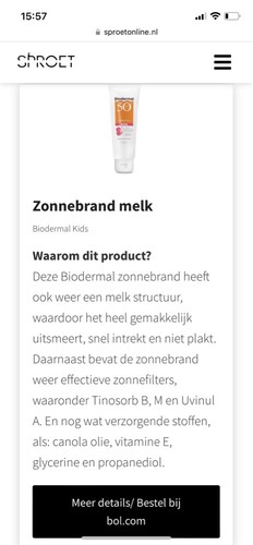 Ik vind naif niet lekker smeren. Er blijft een vette witte waas achter wat vlekken geeft. https://www.libelle.nl/gezondheid/deze-budget-zonnebrand-is-als-beste-getest-door-de-consumentenbond~b385e9ea/?utm_campaign=shared_earned&utm_medium=social&utm_source=WhatsApp ik kwam dit tegen. Dus ga dit jaar voor die van de action maar..