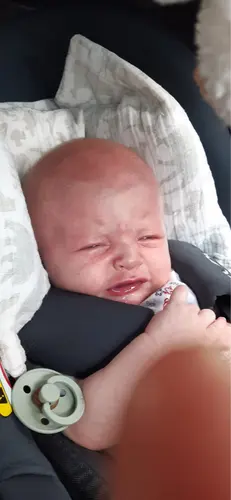 Afgelopen 3 dagen, 3 keer langs de weg moeten stoppen om hem te kalmeren, wil eigenlijk niet meer met hem in die stoel van huis.