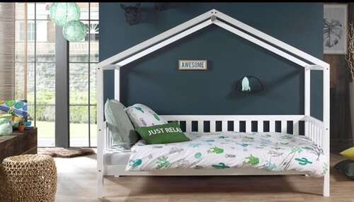 Wij hebben zo'n huisjes bed met aan 3 zijdes een hek, hoofd en voeteneind en dan 1 lange zijde. Wij hebben dus in het begin het bed andersom gezet, met de lange open kant tegen de muur waardoor eruit vallen niet mogelijk was 🙂
