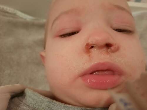 Misschien juist door de neuszuiger een wondje waardoor het bloed? Beterscha ...