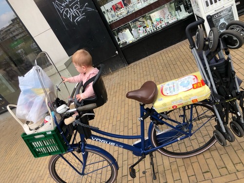 En ik dacht dat ik veel mee kreeg op de fiets..! Maar met twee kindjes wordt dit wel erg zwaar hoor.
