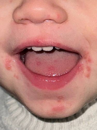 Voorafgaand hebben de kindjes vaak verhoging/koorts, braken, keelpijn of een verkoudheid. Dit is een onschuldige kinderziekte/virusziekte wat binnen 14 dagen vanzelf overgaat. Je kunt altijd op thuisarts kijken :)