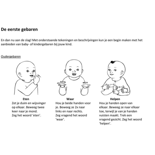 Ik ga wel gebarentaal doen en eigenlijk doe ik dat al een beetje. Baby's kunnen niet praten maar straks wel aangeven als ze iets willen zoals eten en drinken.. Dit voorkomt veel gehuil en frustratie bij je kind... Ik heb dit ook vaak terug gezien bij kdv's dan geven ze aan door gebaren wat ze willen. Zo mooi en leuk om te zien. Wel eerst simpel houden: drinken, eten, aaien en dan steeds beetje bij beetje uitbreiden