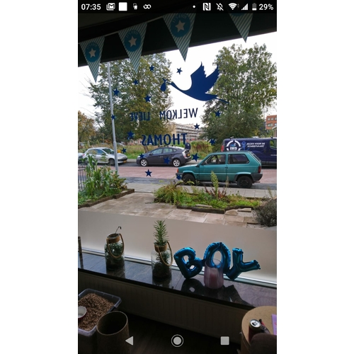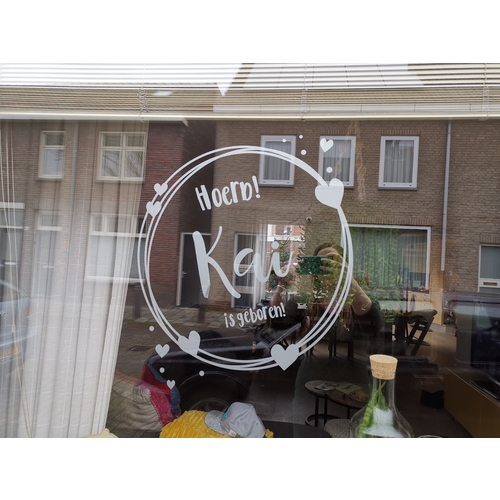 Misschien vind je dit wat? Op deze site kun je raamstickers bestellen als geboorte aankondiging. Wij hebben ook geen tuin maar gaan het op zo鈥檔 manier doen 馃檪