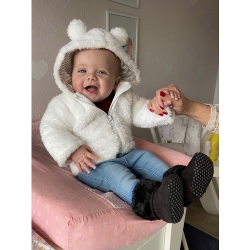 Ik doe haar deze aan! Het is wel een jasje officieel gezien maar je kunt het zien als een dik vest. Het is geen dikke opgeblazen winterjas, haha. Dat gaat gewoon prima hoor! Heeft ze het lekker warm mee!