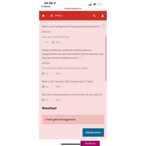 Maar voor nu heeft TO dus geen toeslagpartner en wordt ze als alleenstaande gezien voor de toeslagen.