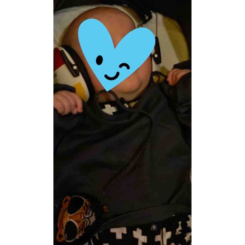 Superfijn! Hier waa hij 3 maanden oud, hield hem gewoon op! Nog steeds in gebruik tijdens carnaval/boren etc...