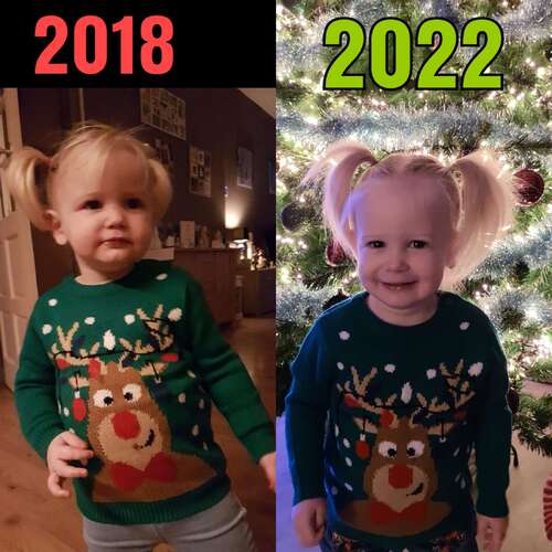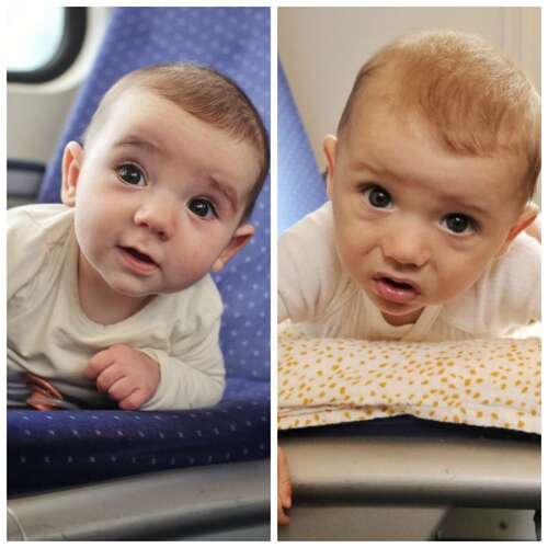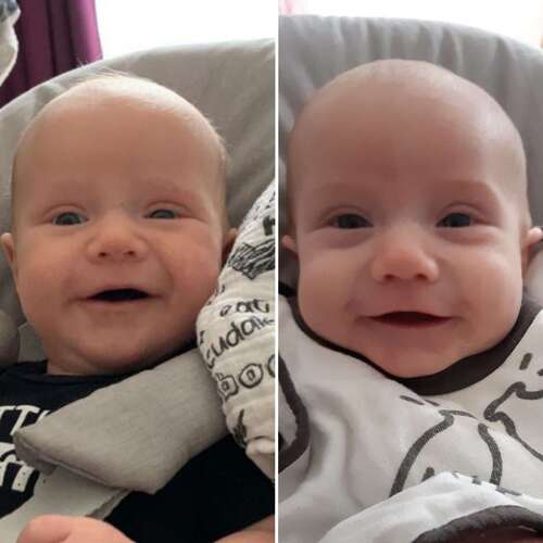 Links de oudste (juli 2019) en rechts de jongste (augustus 2022). Ik vind ze veel op elkaar lijken, maar onze oudste is blond met blauwe ogen en de jongste lijkt donker haar met bruine ogen te krijgen.