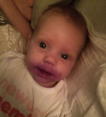 Uiteindelijk via internet gentiaan violet gekocht. Zowel op tepels als in haar mondje gesmeerd. Het nadeel is dat doordat het ook op de borst zat het hele gebied rondom haar mond paars zag. Dit kon je ook niet weg Vegen en moest echt slijten zeg maar. Het zag er dus wel ruim een week heel gek uit, maar het hielp wel en daarna waren we eindelijk van de spruw af.