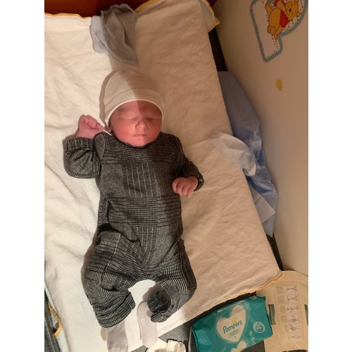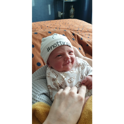 Voordeel van wat dikkere kindjes is dat ze na de geboorte wat meer kunnen hebben en zichzelf makkelijker warm houden. Hij is eind augustus geboren, dus de ergste warmte was voorbij, heeft eigenlijk helemaal geen kruik nodig gehad.