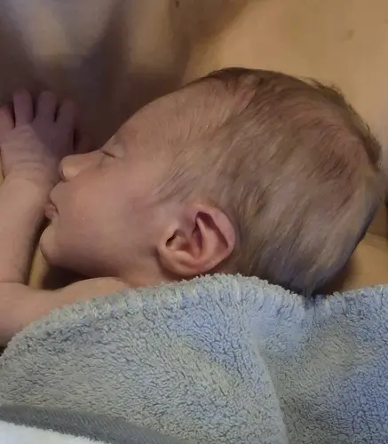 Ik heb er geen foto van, maar bij ons is het wel overgegaan. Ze is nu 3 maanden en ik denk dat het met een week of 2 al wel helemaal weg was. Je zou even contact kunnen opnemen met de jeugdarts 😊