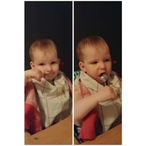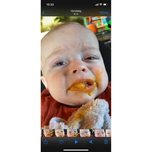 Ik heb nu gen foto maar onze kleine is bijna 9 maanden en hij gaat nu ook al meer onderscheid maken tussen wat lekker is en wat minde lekker is... 馃槀 Als ik hem het 1ste hapje geef (fruit of warme maaltijd maakt niet uit) dan moet ie altijd even schakelen en dan trekt ie me toch een vies gezicht! echt mooi 馃槅