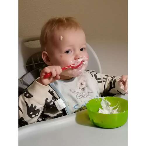 Meneer wilde zelf de lepel vasthouden. Is 4.5 maand oud馃榿
