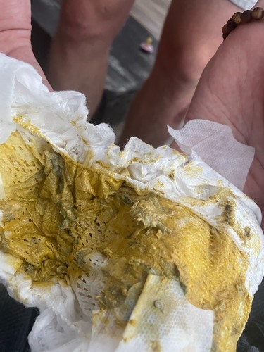 Het zit tussen gele ontlasting schrijf je dus ook niet meteen in paniek raken hoor 馃槈