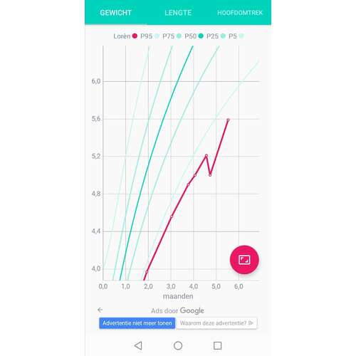 Dochter hier is 'n stuk kleiner (is de who curve). De grote dip was buikgriep.