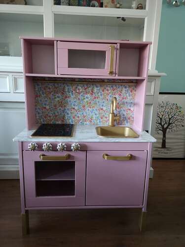 Wij kochten een ikea keukentje en pimpte hem zelf op. Nu is ze bijna drie en nog steeds een grote hit!
