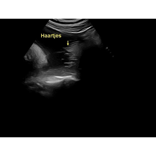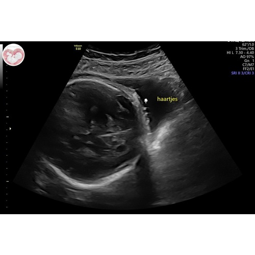 Wij hebben laatst ook een echofoto met haartjes gehad. 😂