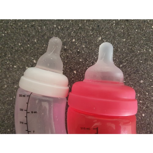 Wat raad je mij aan ik wil gelijk fles geven. De smal heeft alleen deze formaat. De kleine is tot 170 ml dacht ik. Na 3 maanden kan ik die toch niet meer gebruiken 😊je had helaas de brede niet in het klein bij de drogist. Zit er veel verschil op met de spenen.? Krijgen ze dan meer lucht bij de brede.?