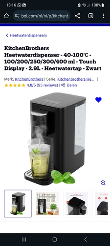 Ik heb sinds december deze. Wat ben ik er blij mee. Ideaal. Snel, handig . Mooi. Maakt geen lawaai. Binnen 3 seconden heet water. Je kunt kiezen tussen 40 / 100 graden in stapjes . Dus ook 60 graden of 70.