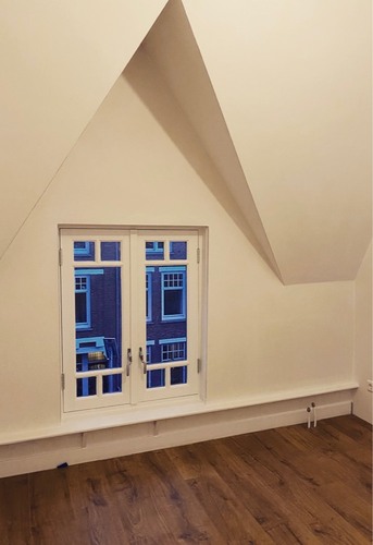Daadnaast denk in dit geval, dat met dat plankje onder het raam, gordijnen tot de vloer juist wat vreemd zijn.