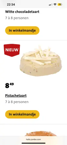 Koelkast: Bewaar de taart in de koelkast (4°C), in de originele doos of luchtdicht afgedekt.