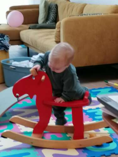 Wij hebben schommelrendier uit Ikea en die wordt druk gebruikt 😊 hij kruipt er zelf op en af, kan zelf al schommelen, echt topding!!
