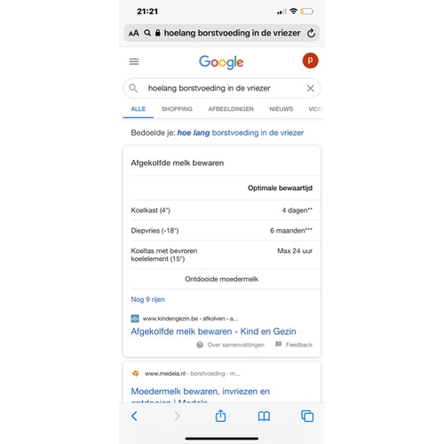 Afgekoelde moedermelk moet bij voorkeur binnen 48 uur in de diepvries. Indien de melk later wordt ingevroren, kan het zijn dat deze minder lang houdbaar is.