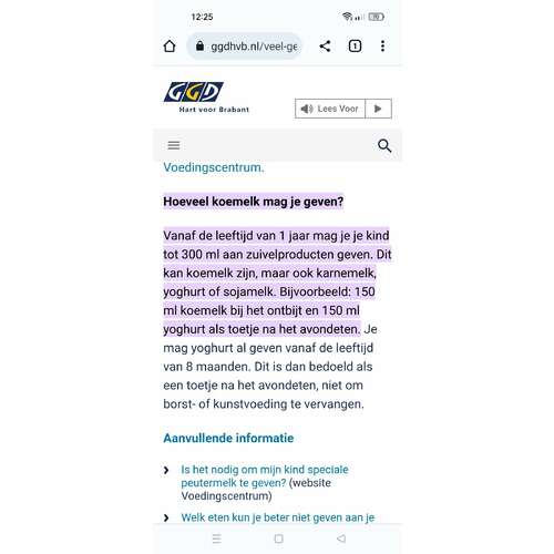 Maximaal 300 ml melk ivm de nieren? Nog nooit van gehoord, waar baseer je d ...